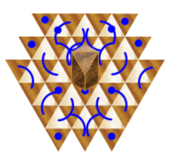 In Maya®Chess "The Game of the Gods" ALL PLAYERS move from one face to the next, using their edges as axes of rotation THE EXCEPTION is the Ball-Leader piece WHICH MOVES ALONG the sides of the triangles.